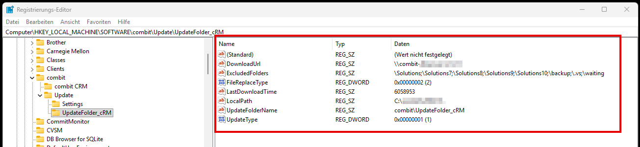 Unter address pick-up konfigurieren können Sie sich die Übernahme zusammenstellen und auch die beiden scheinbar verwaisten Einträge loswerden. Wo Ihre Solution liegt, sehen Sie in der combit CRM 13 Oberfläche unter Datei > Öffnen ganz oben, den Pfad können Sie dort auch markieren und kopieren.