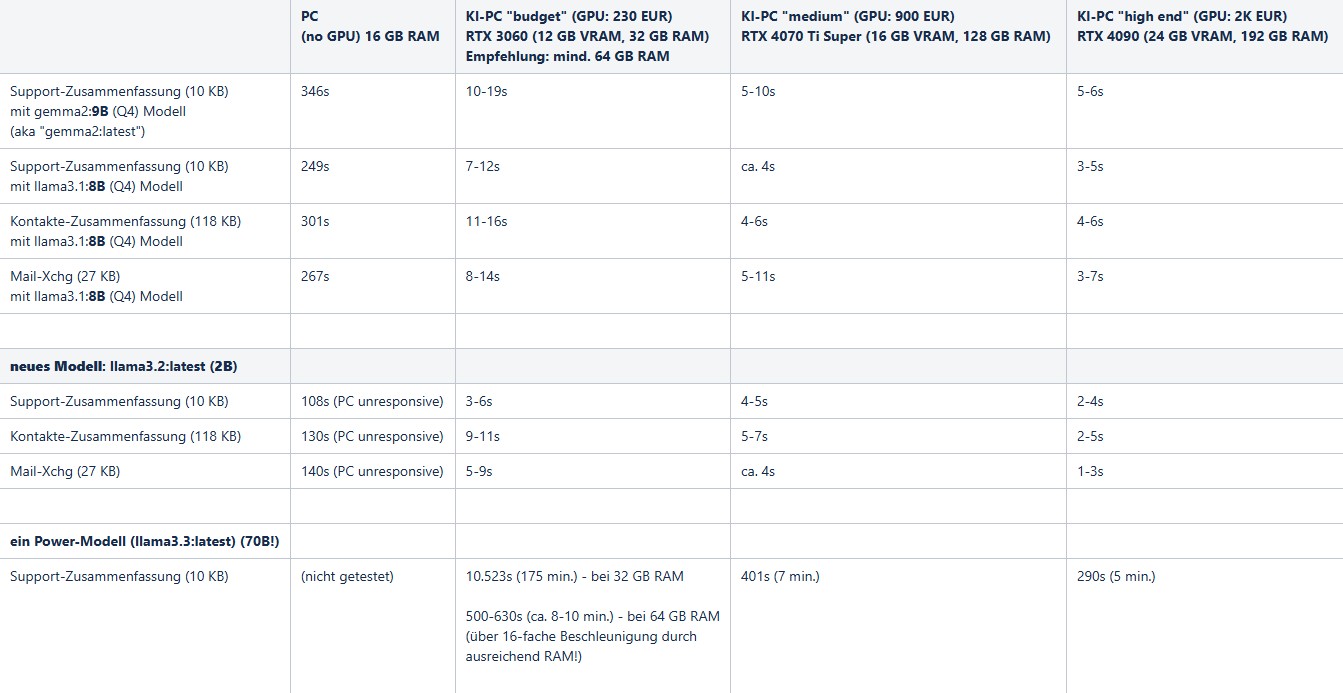 Jeden Monat erscheinen neue oder aktualisierte Modelle, die in der Regel mehr leisten bei weniger VRAM-Verbrauch. Ein guter Indikator ist die hier angezeigte Reihenfolge und die Anzahl der Downloads pro Modell: library. So sind z. B. deepseek-r1:8b und gemma3:4b interessante Neuerscheinungen, die wir noch nicht testen konnten.