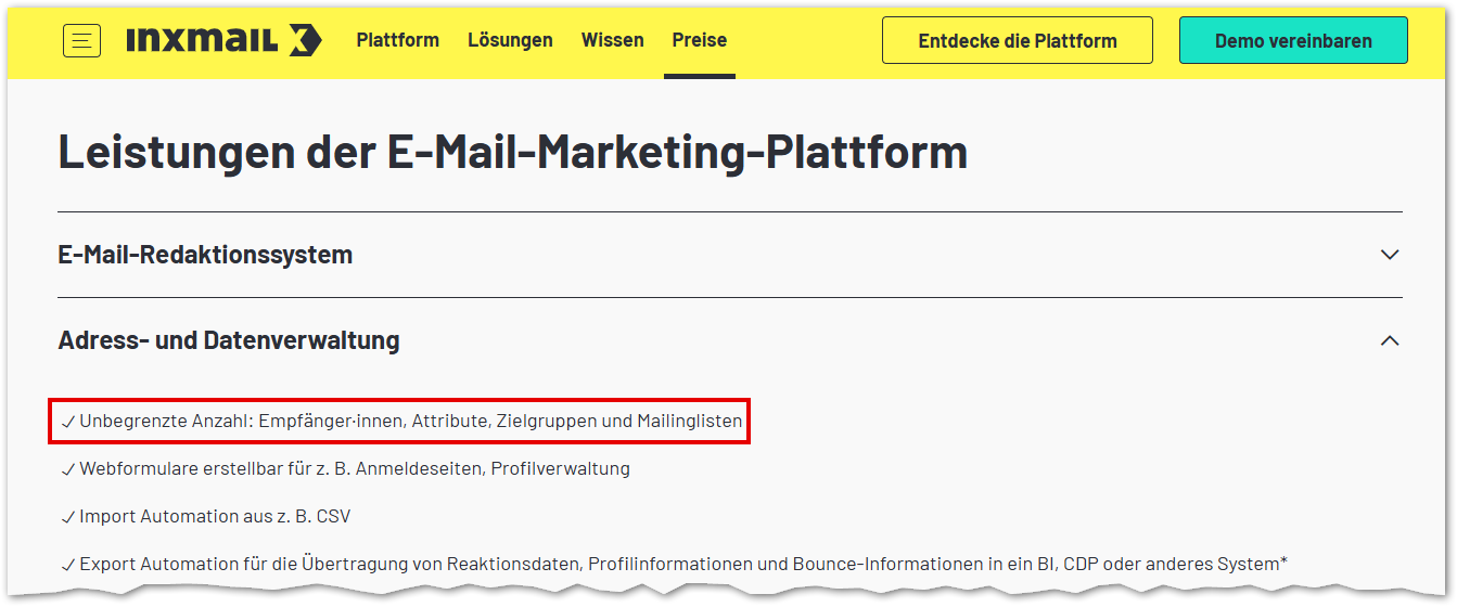 combit versendet die regelmäßigen Mailings bzw. Newsletter über Inxmail: Deutsches Unternehmen, deutsche Server, DSGVO-konform, super Renommee, sehr gute Zustellbarkeit, Inxmail hat in Freiburg ein Team, das sich nur mit den entsprechenden Compliance-Regeln der großen Provider für bestmögliche Zustellbarkeit und Trustworthiness beschäftigt.